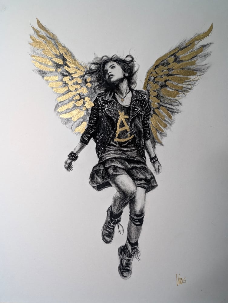 Charcoal and 22ct Gold Leaf on Italian Fine art Fabriano paper