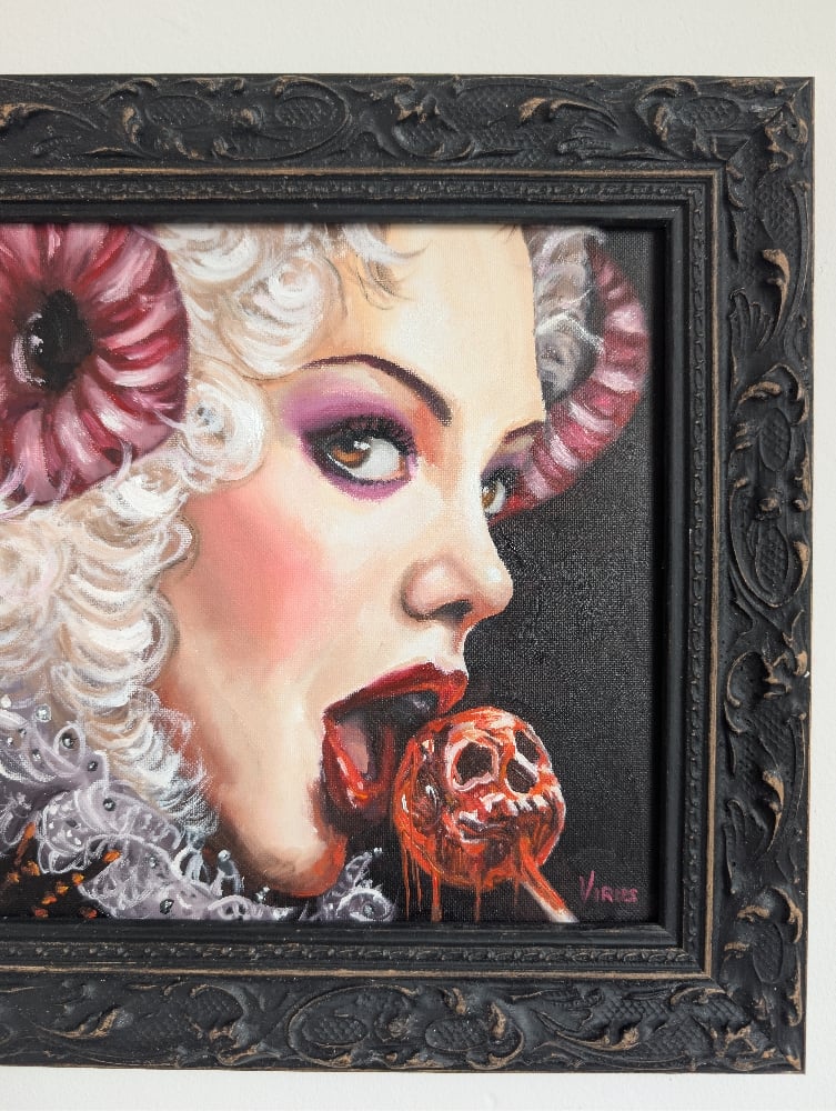 Oil on canvas, framed in a custom made baroque black frame.