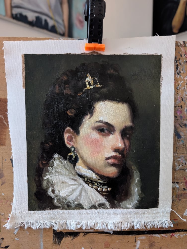 Her pearls and lace suggest nobility, but her gaze belongs to the sea untamed, defiant, and loyal to no crown but her own.
