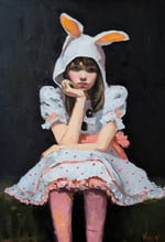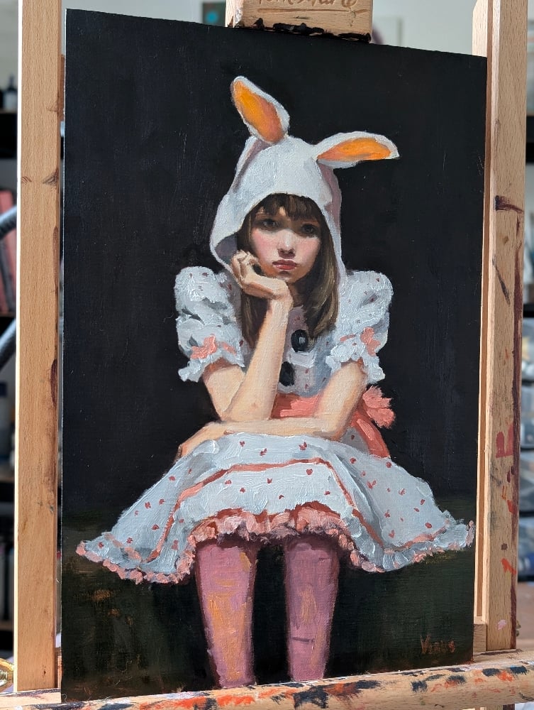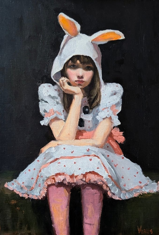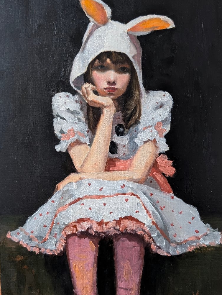 In this piece, she sits quietly, watchful. There is softness in her posture, but strength in her stillness.